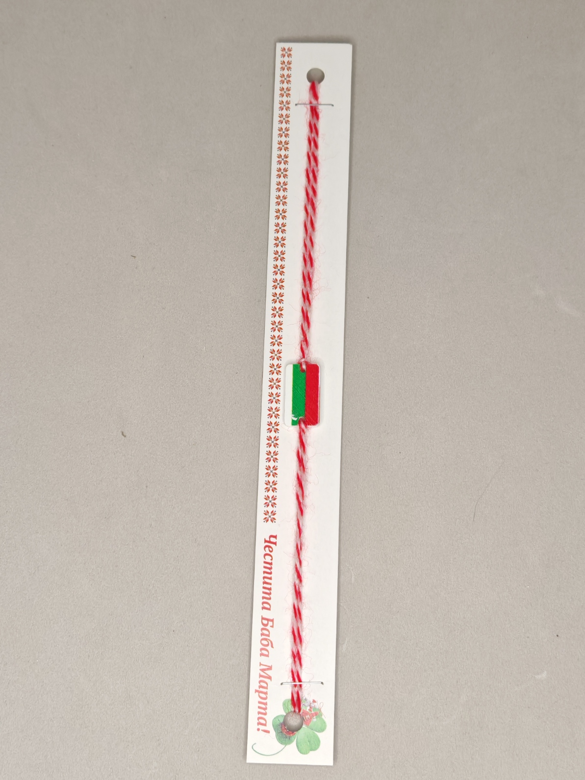 Bulgaarse vlag – houten beeldje met dun wit en rood draadje