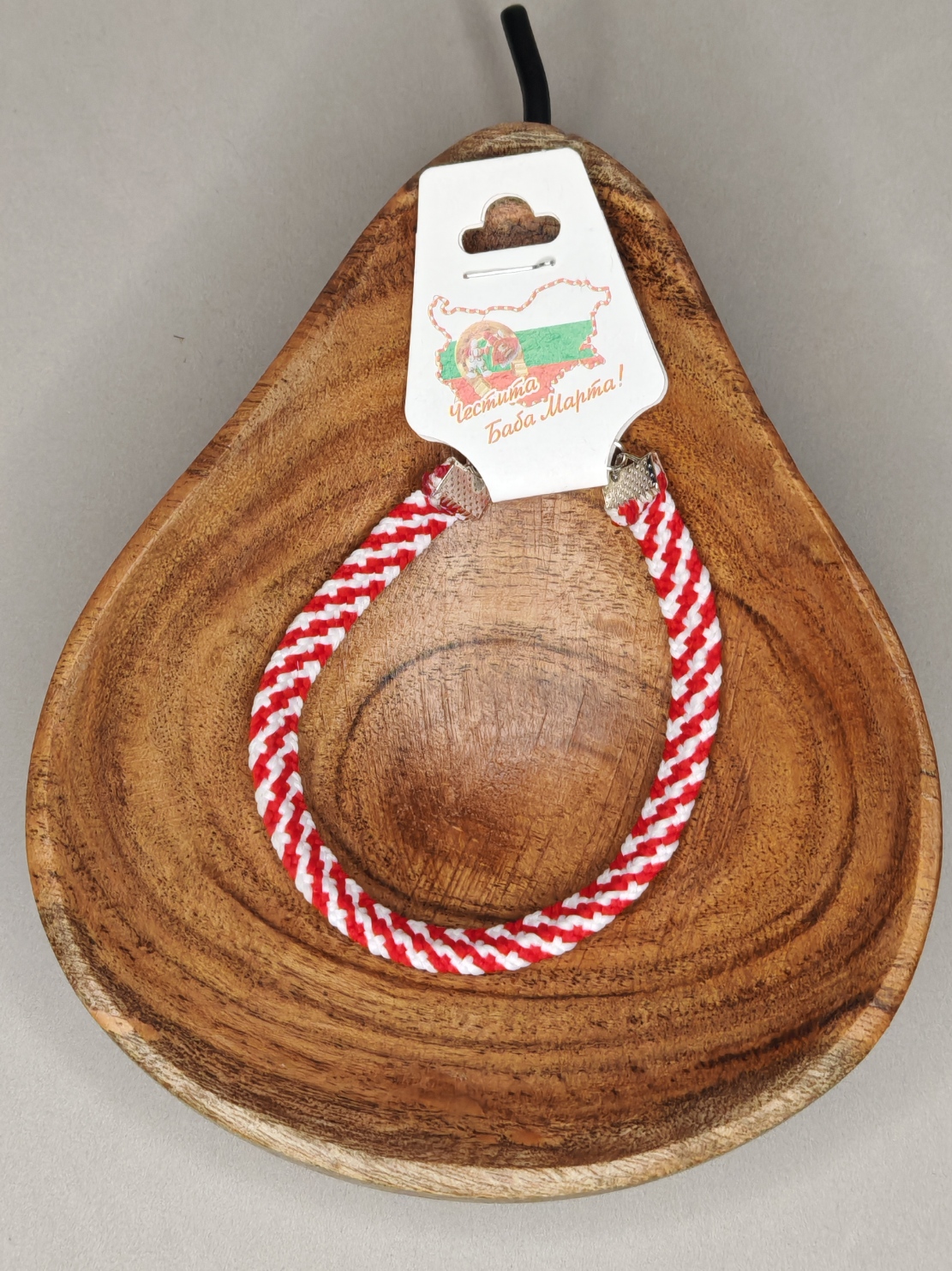 Breed koord in een prachtig gebreid patroon in wit en rood met een metalen sluiting.